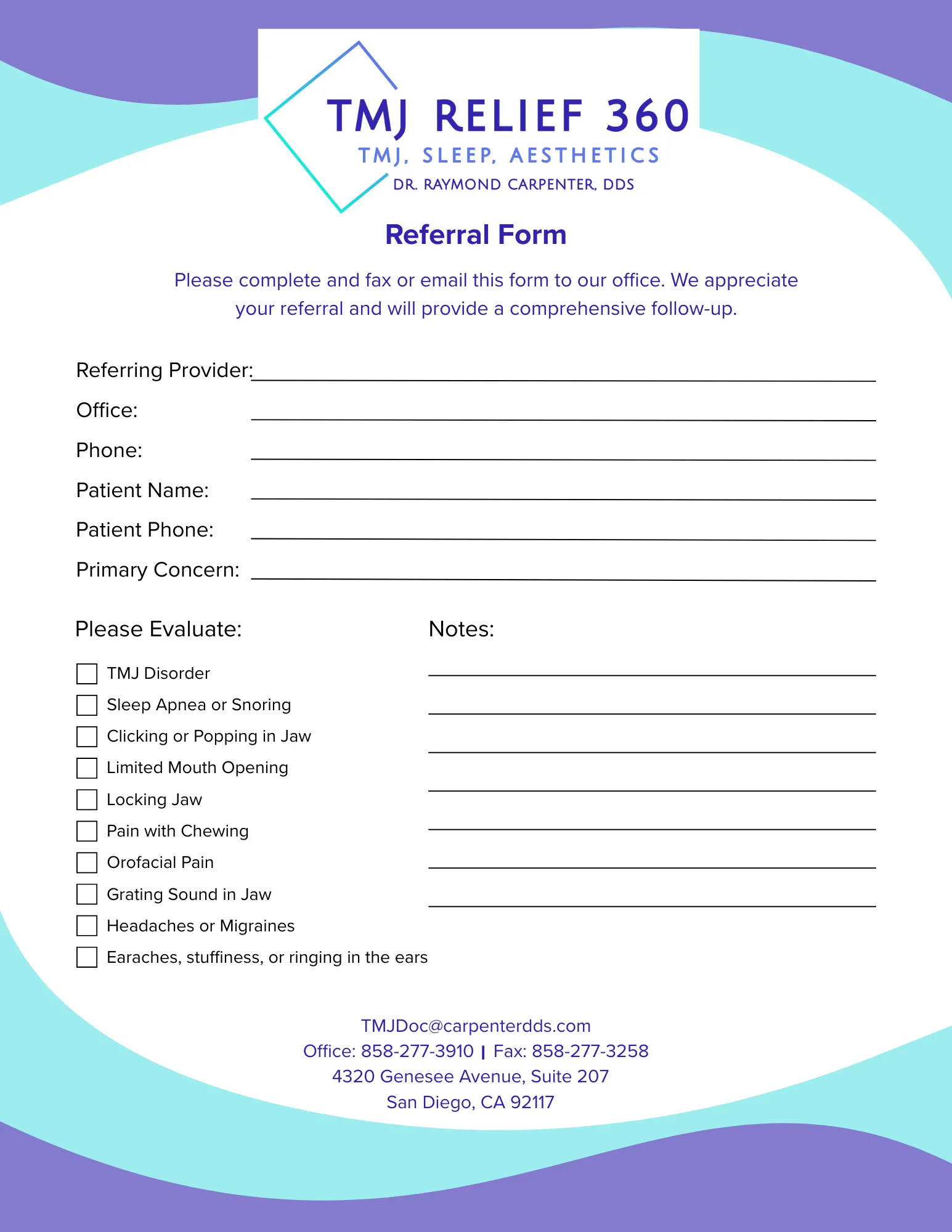 Please complete and fax or email the referral form to our office. We appreciate your referral and will provide a comprehensive follow-up.
